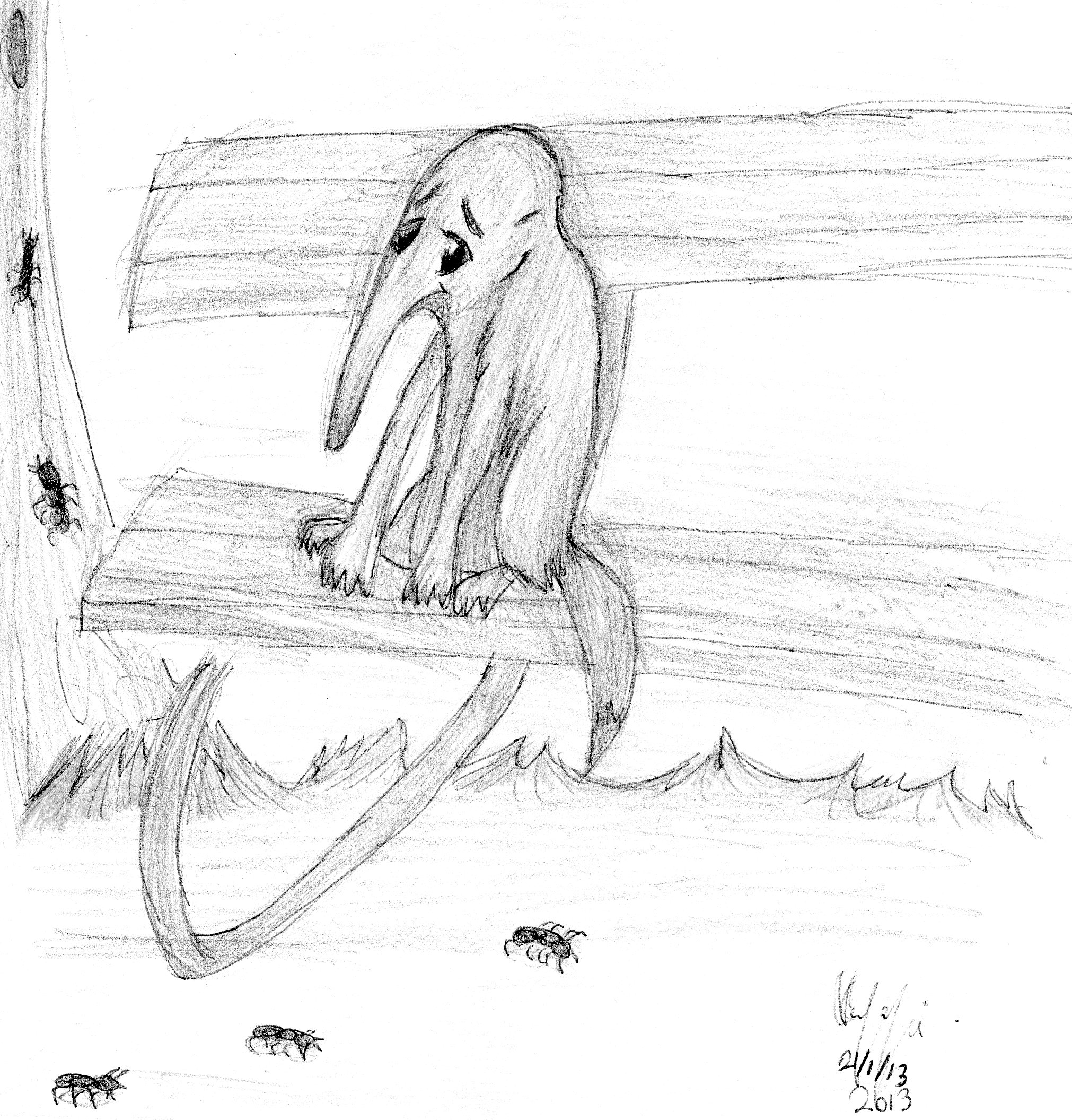 I could see I was getting nowhere with this stubborn anteater, er, South American Distinguished Beak Mammal. So I took him to a park bench and had lunch with him. Well, I ate and he just sat there and starved, you know because of the strike. I had my salami on rye sandwich. He had his thoughts of ants and termites simmering on a stove.