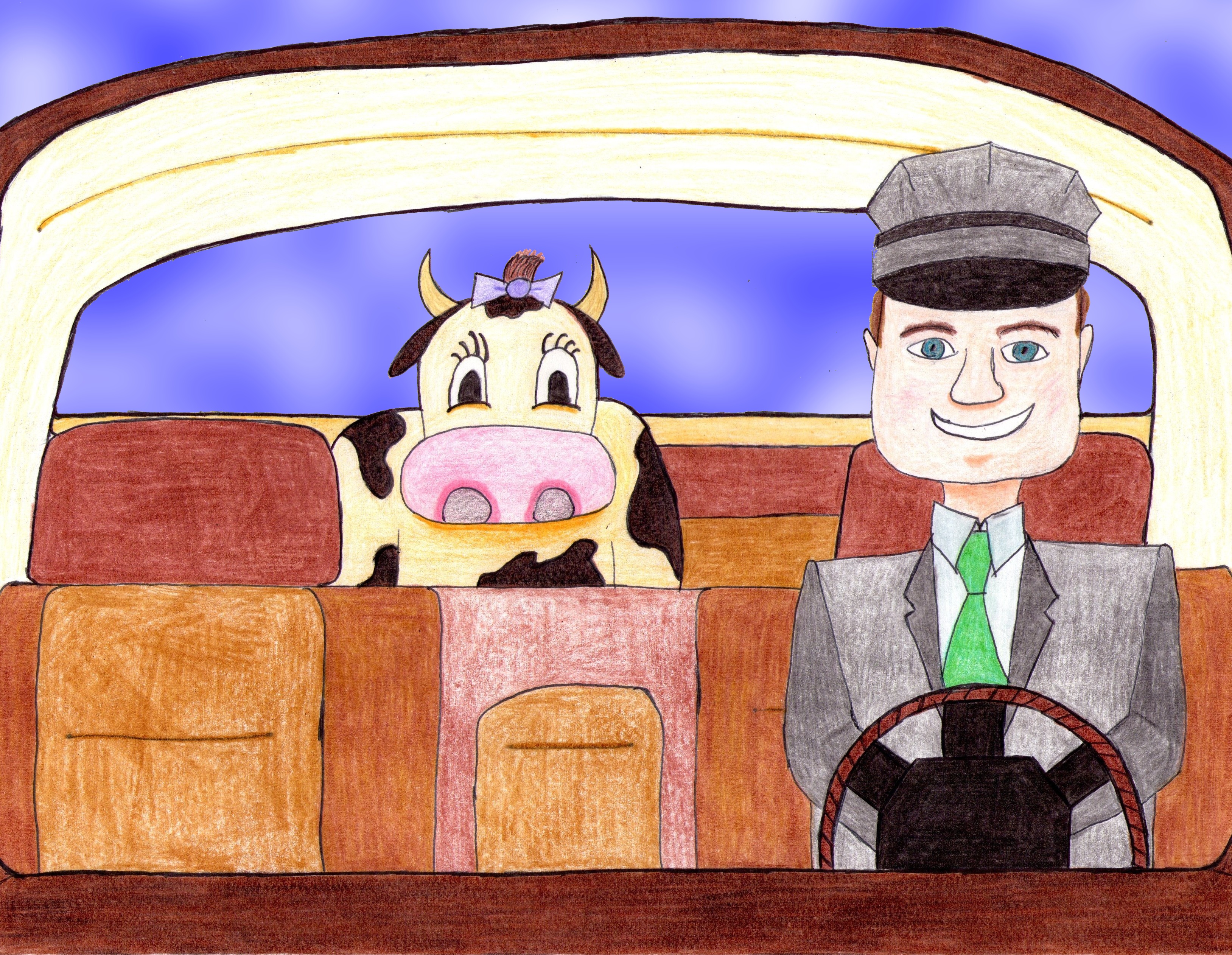 “But you have to pay your dues, boys and girls. You have to work hard and make sacrifices. It took me 15 years before I could afford one of those babies. Fifteen years of taking all sorts of crap from cows and sheep. ‘Take me here!’ ‘Take me there!’ ‘Why are you late?’ ‘Why are you going this way?’ ‘I told you not to keep the meter running!’ You name it, I’ve heard it. One time a cow spent the whole time I was driving her gabbing on the phone with a friend. She laughed so hard milk ran out of her nose. It poured down her face and seeped into my upholstery. When I asked her to help me clean it up, she punched me in the face. I had a hoof mark for a week. And I never did get paid for that job.