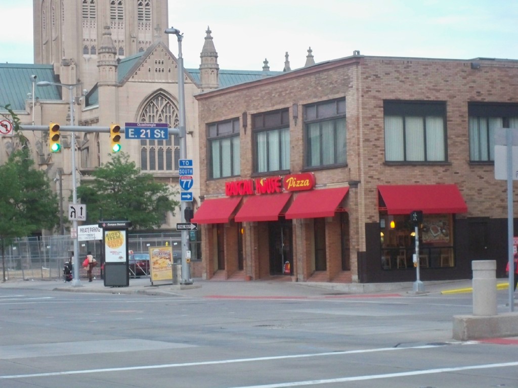 In those days there were only four places to grab a bite at CSU: The Shire, Fat Glenn’s, the cafeteria, and Rascal House. The Shire was in the basement of “The Cage” and seemed like a nice place to eat. Fat Glenn’s was near Mather Mansion and looked like a speakeasy, at least from the outside. The cafeteria was on the third floor of “The Cage” overlooking a deep vertical drop to a wide open floor below. Not an ideal situation for someone who has a fear of heights. Rascal House seemed innocent enough. I’ll just grab a quick slice and be on my way.